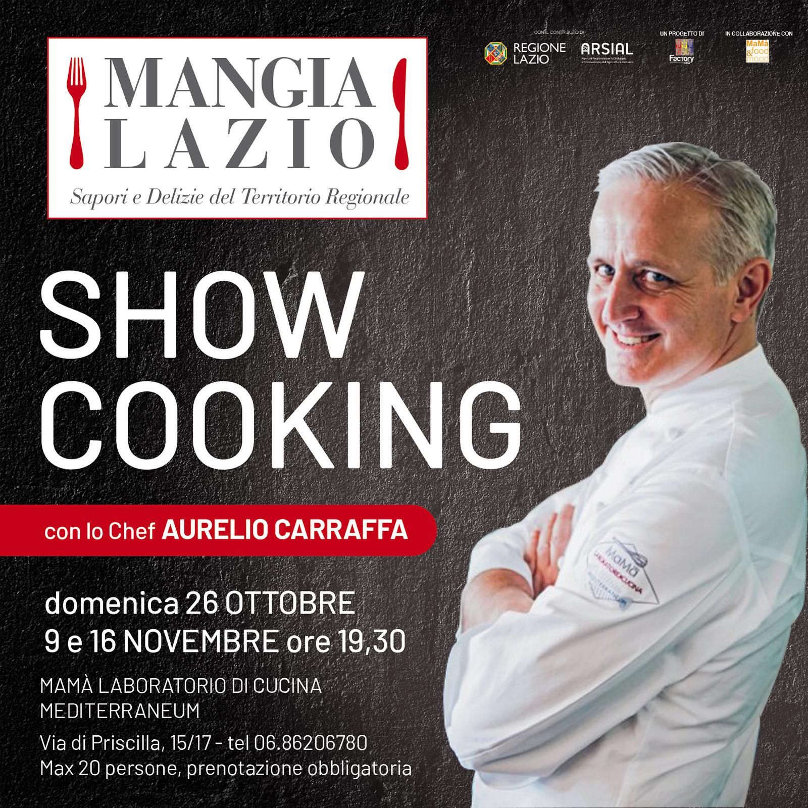Torna a Roma Mangialazio, con il contributo di Arsial, l’agenzia regionale per lo sviluppo e l’innovazione dell’agricoltura del lazio Show cooking, degustazioni e ricette con i prodotti enogastronomici del territorio laziale con lo chef Aurelio Caraffa nel laboratorio di cucina Mediterraneum
